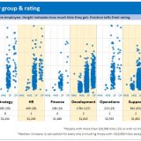 Scenario: Your organization of 3,686 people recently went thru annual performance ratings & review process. At the end of it, everyone was offered some salary increase (from $0 to $24,000 per year). You have 7 business groups. How do you tell the story of all these salary hikes in one chart?